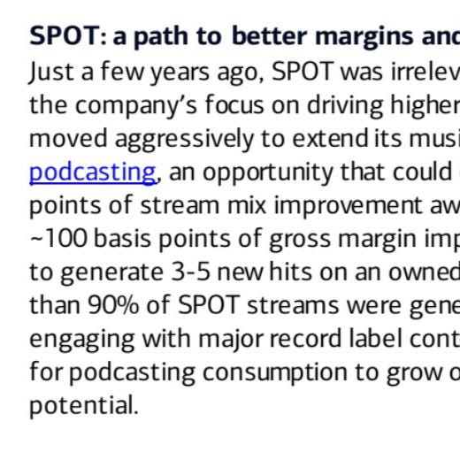 We go into the room and he starts by saying, "people subscribe to HBO NOW, and they pay $15 a month. They subscribe to Spotify, they pay $15 a month, Sirius XM, $20 a month. Those same people, when they rate the services, they subscribe to say Netflix is more valuable to them. If Netflix, instead of charging $10 a month, charged $15 it would be selling at 13 times earnings." And it was like the bell went off. That's that's a way of thinking about the business value there that I had never thought of — that the willingness of Netflix to sacrifice current income by not charging as much as they could for their product to instead grow their subscriber base 25% a year to a point where the moat has become almost so large that it's impossible to think of somebody displacing them.